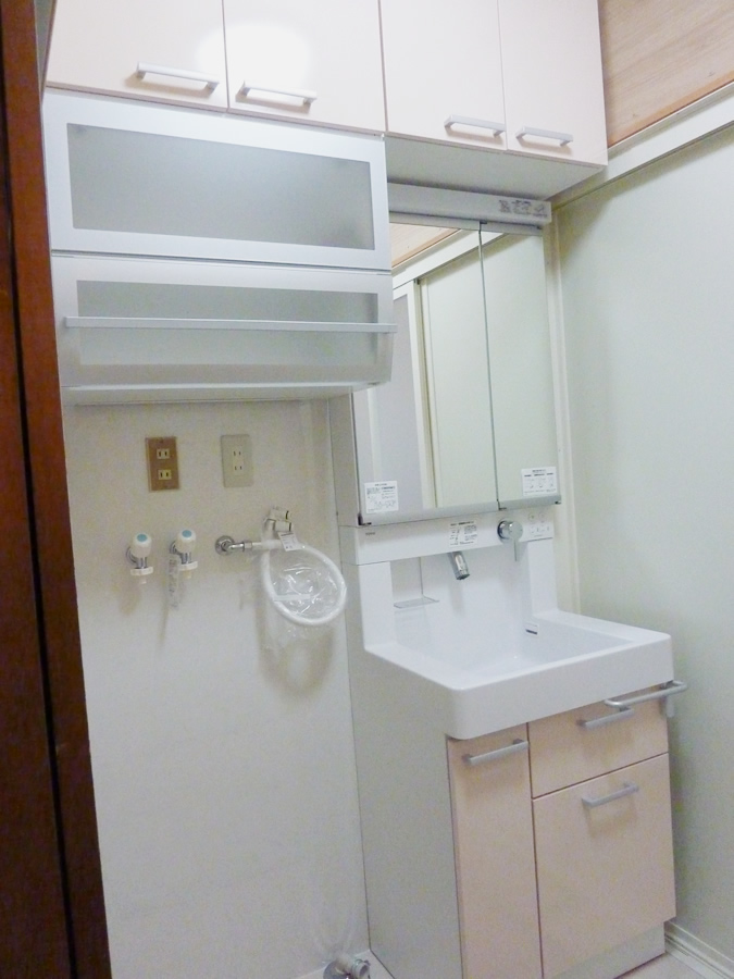 mod:片引き戸,リモデア,体重計収納,洗濯機用キャビネット,お湯取り配管